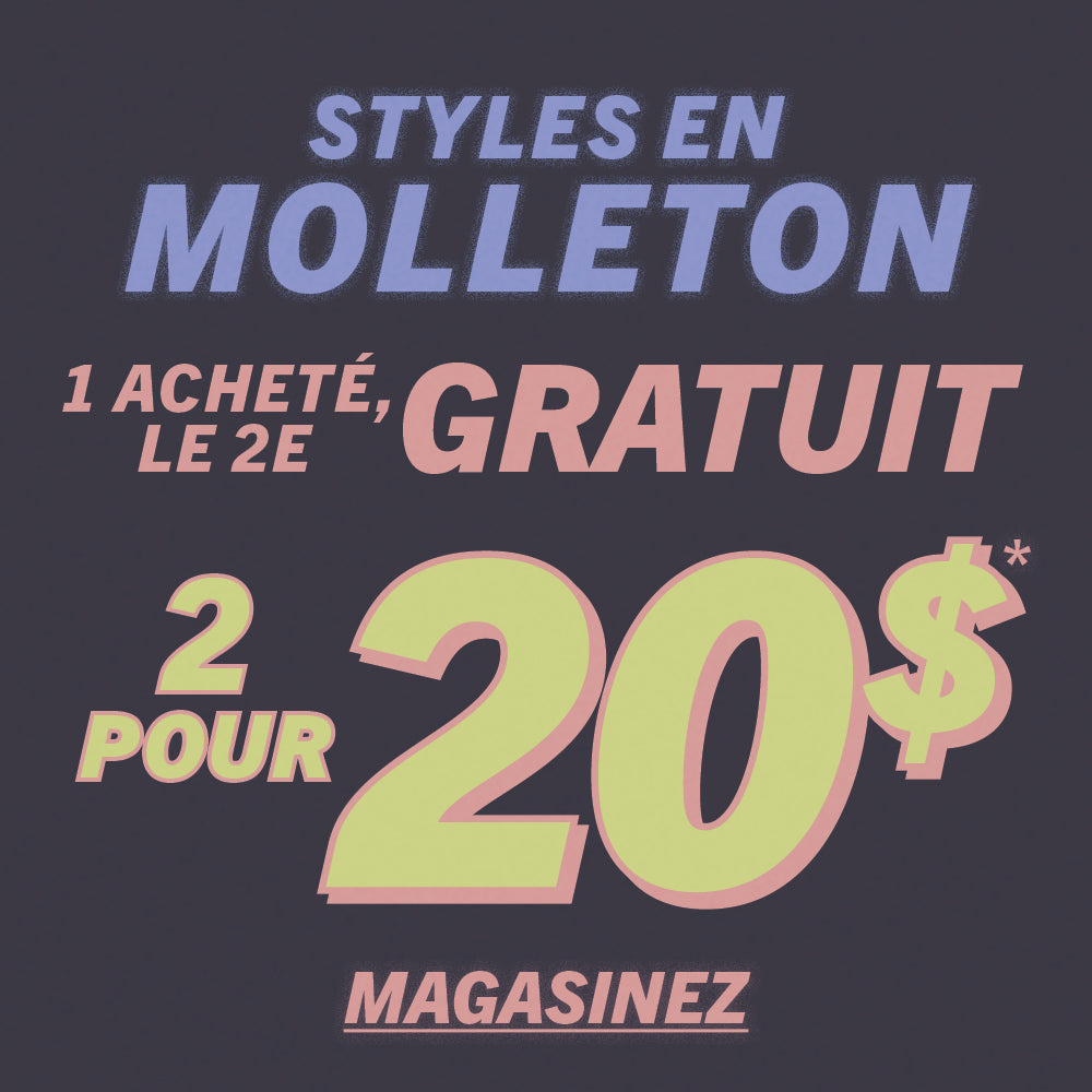 *1 acheté, le 2e gratuit : Le rabais s’applique à l’article de valeur égale ou inférieure. Le prix final à la caisse peut varier selon les articles ajoutés au panier. Les prix 2 pour affichés reflètent la combinaison admissible la plus avantageuse selon la promotion. Offre valide jusqu’à épuisement des stocks.